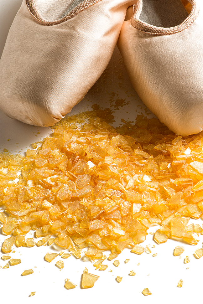 Crushed Rock Rosin is a must have in every dance studio. It is used by dancers to stop slipping but allow free movement. This product is ideal for ballet classes, performances and shows. It is also suitable for gymnastics. When you step on the crystals, they turn into a white powder that coats the bottom of your shoes.