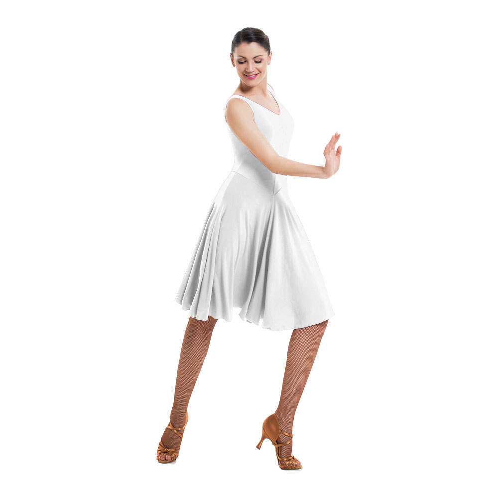 Υψηλής ποιότητας κορμάκι χορού με φαρδιά φούστα μέχρι το γόνατο. Ο συνδυασμός αυτός χαρίζει μοναδική εφαρμογή, χωρίς να γλιστράει στη μέση. Γραμμή που αγκαλιάζει τη σςιλουέτα της χορεύτριας, με λαιμόκοψη V και διακριτική πλάτη εξασφαλίζει ασύγκριτη κομψότητα για χορούς ταγκό ή Charactere.
