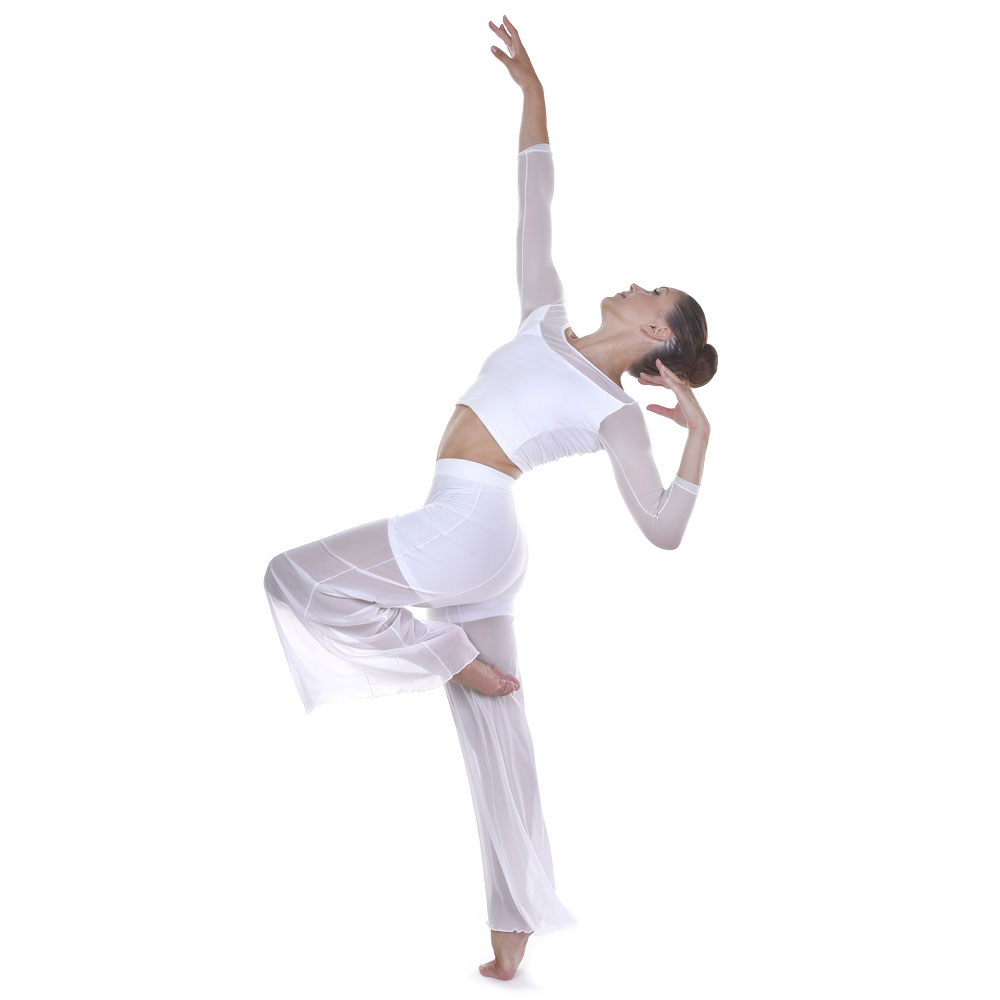Γυναικείο Τοπ 3/4 Μανίκι, Βαθειά Λαιμόκοψη & Πλάτη, Ελαστικό Τούλι, Λευκό
