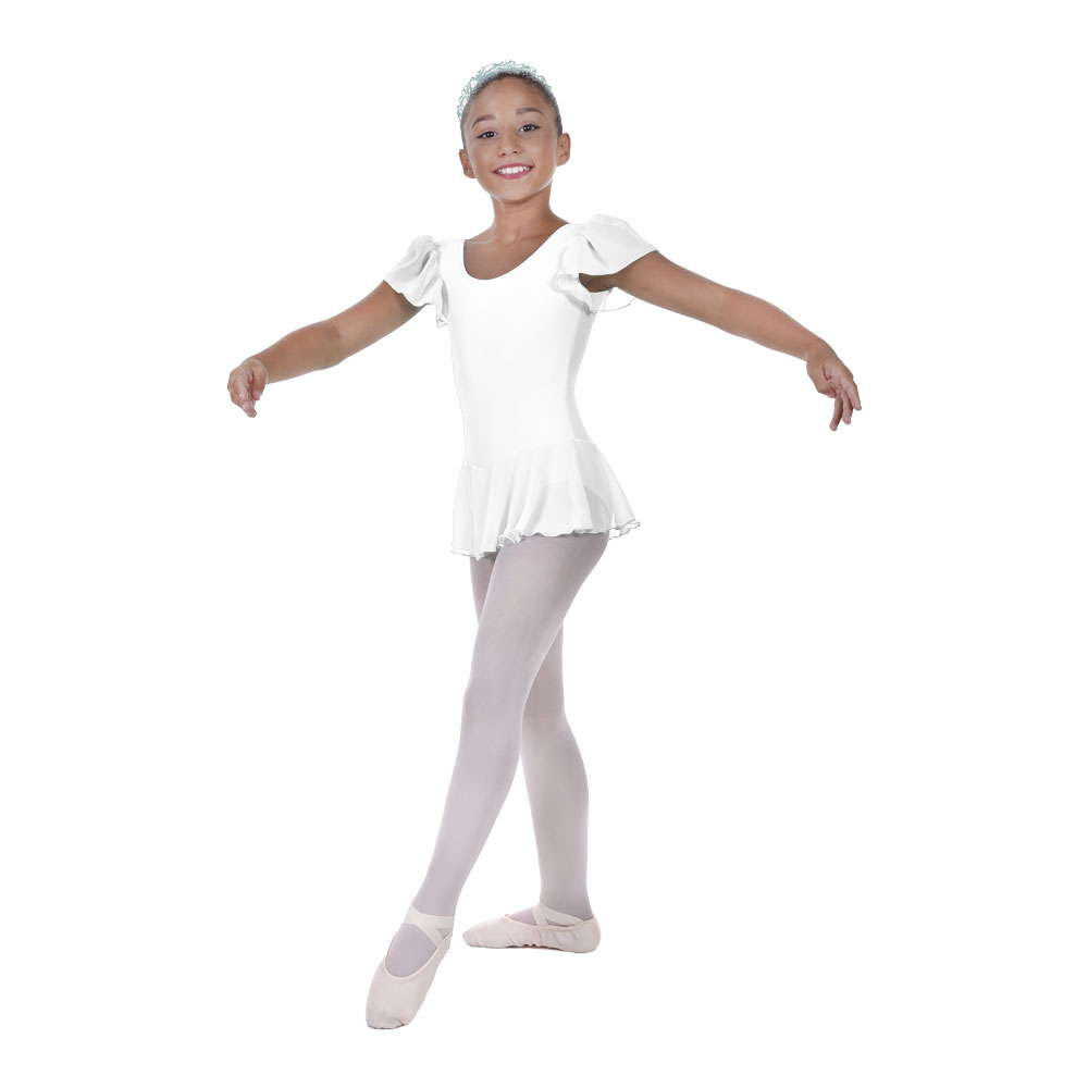 Παιδικό Κορμάκι με Πλισσέ Μανίκι & Ενσωματωμένη Φούστα, Βαμβάκι - Ελαστάν Λευκό