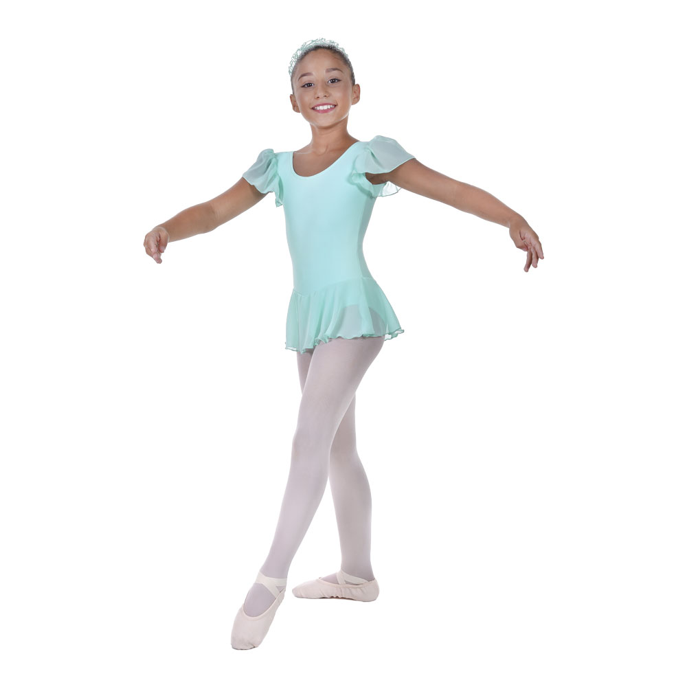 Παιδικό Κορμάκι με Πλισσέ Μανίκι & Ενσωματωμένη Φούστα, Λύκρα Ματ Παγωμένο Γαλάζιο