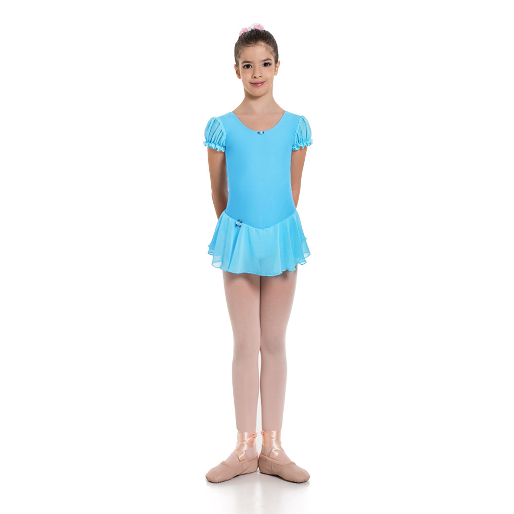Παιδικό Κορμάκι Με Φουσκωτά Μανίκια και Ενσωματωμένο Φουστάκι, Βαμβάκι - Ελαστάν Γαλάζιο
