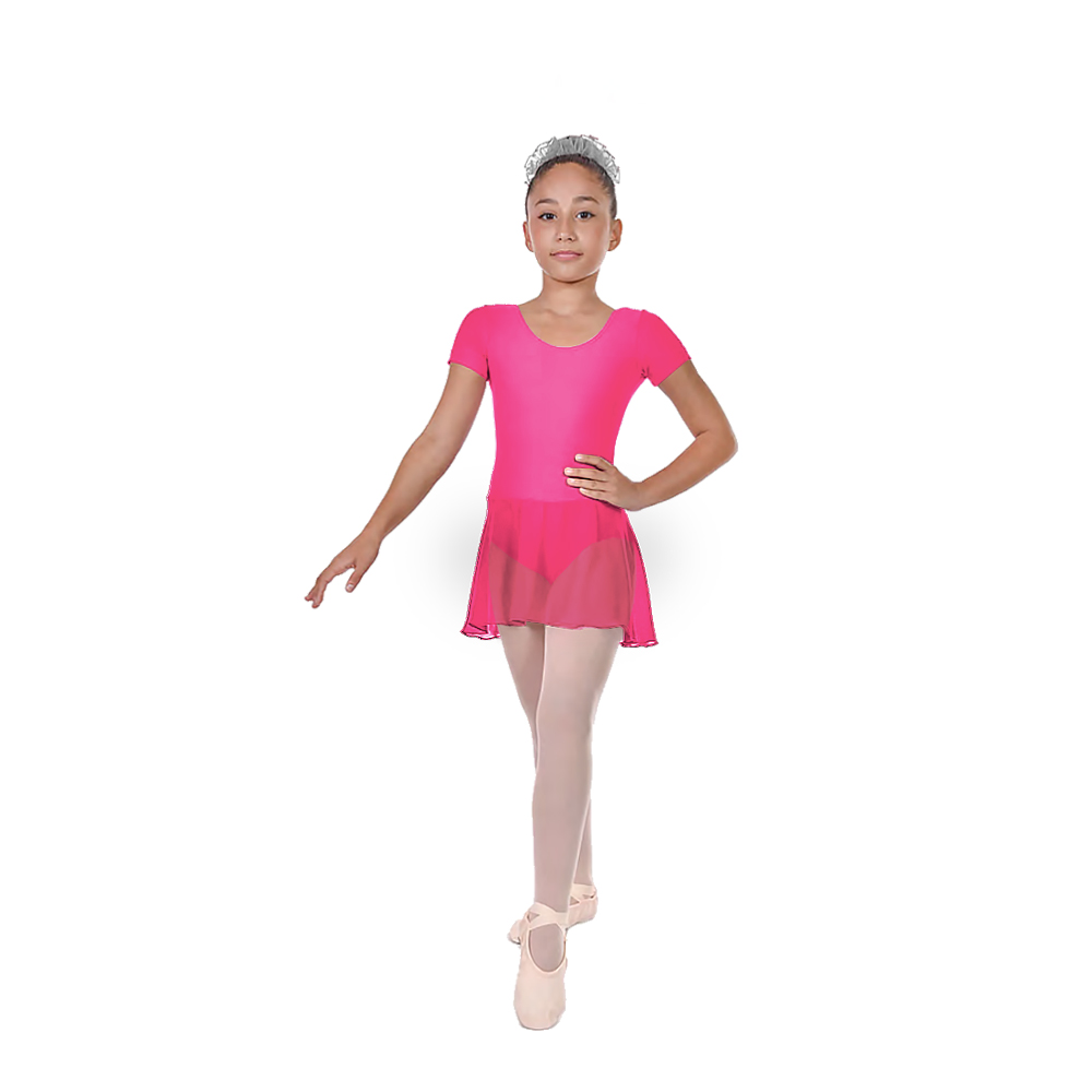 Παιδικό Κορμάκι με Ενσωματωμένη Φούστα από Μουσελίνα, με Κοντό Μανίκι, Βαμβάκι - Ελαστάν Φούξια
