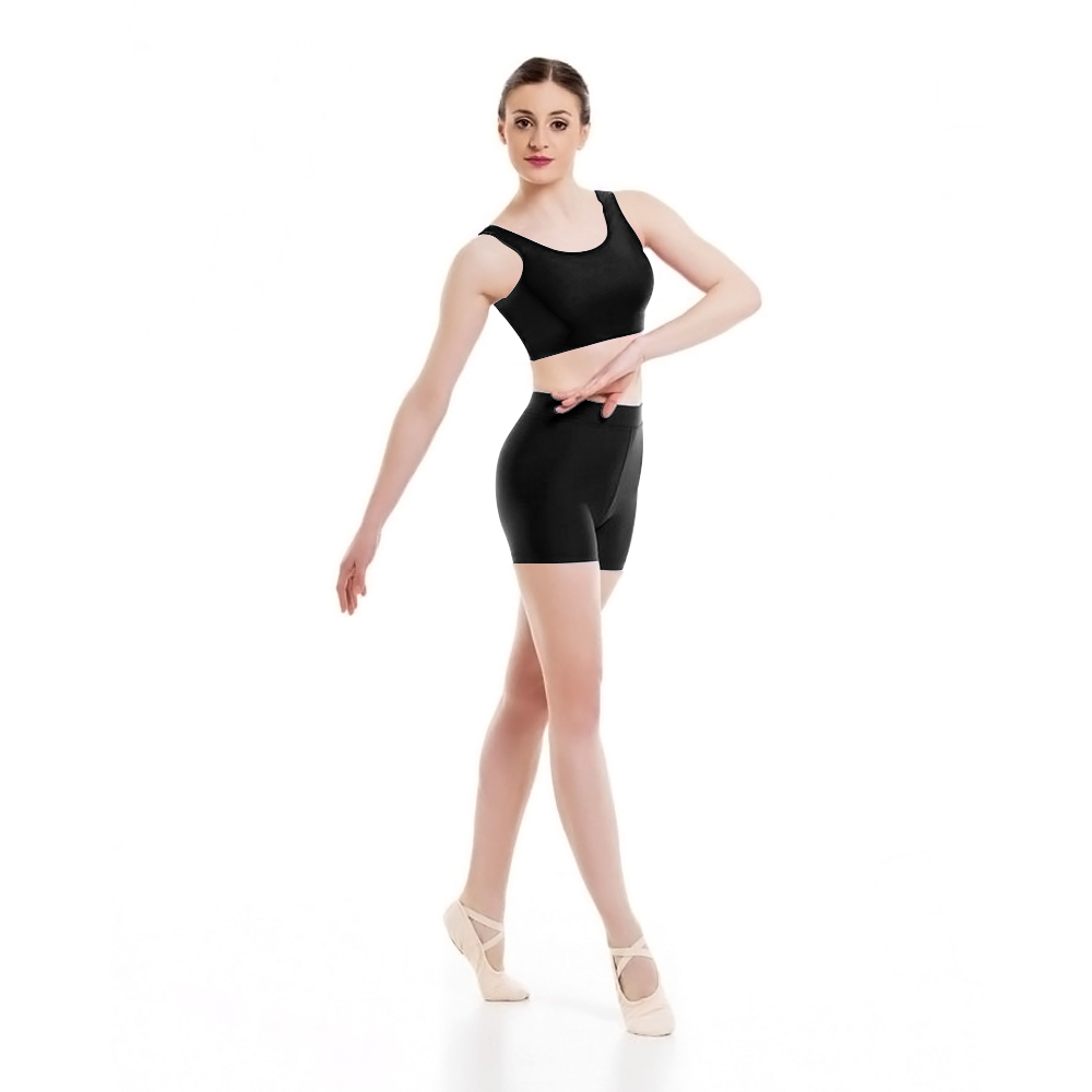 Κοντό σόρτς σε εφαρμοστό κολάν, κατασκευασμένο από υψηλής ποιότητας υφάσματα, σχεδιασμένα ώστε να είναι άνετα και να κρατούν αρκετά όσο και αν τα ταλαιπωρείτε στην προπόνηση, στο γυμναστήριο ή ακόμη και στην σκηνή την ώρα της παράστασης. Ένα άνετο σορτς είναι κάτι που πρέπει να έχουν οι χορευτές, καθώς επιτρέπει στο σώμα να κινείται ελεύθερα και προσαρμόζει ανάλογα την πόζα και τη στάση του σώματος.
