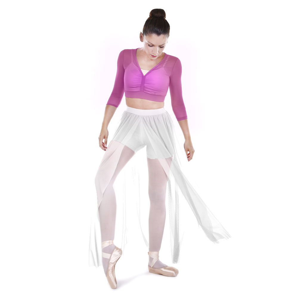 Γυναικείο τοπ με μανίκια 3/4 και φινίρισμα σε λαιμόκοψη από ανθεκτικό ελαστικό τούλι.
