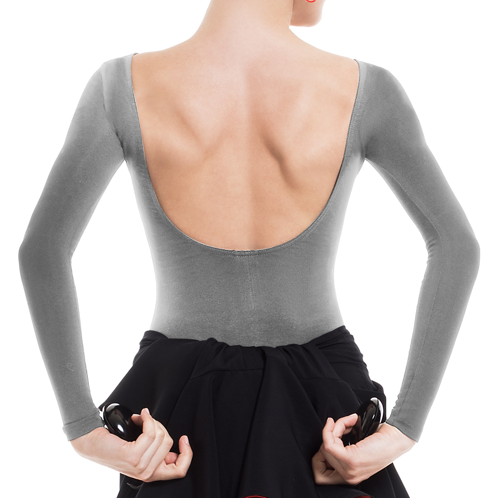 Γυναικείο Κορμάκι με Μακρύ Μανίκι & Χαμηλό Κόψιμο στην Πλάτη, Βαμβάκι - Ελαστάν Ανοιχτό Γκρί