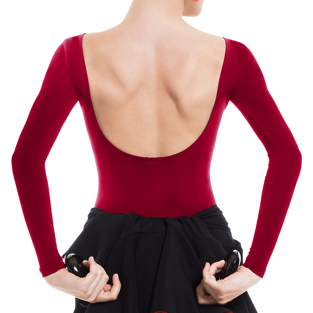 Γυναικείο Κορμάκι με Μακρύ Μανίκι & Χαμηλό Κόψιμο στην Πλάτη, Βαμβάκι - Ελαστάν Μπορντό Κόκκινο