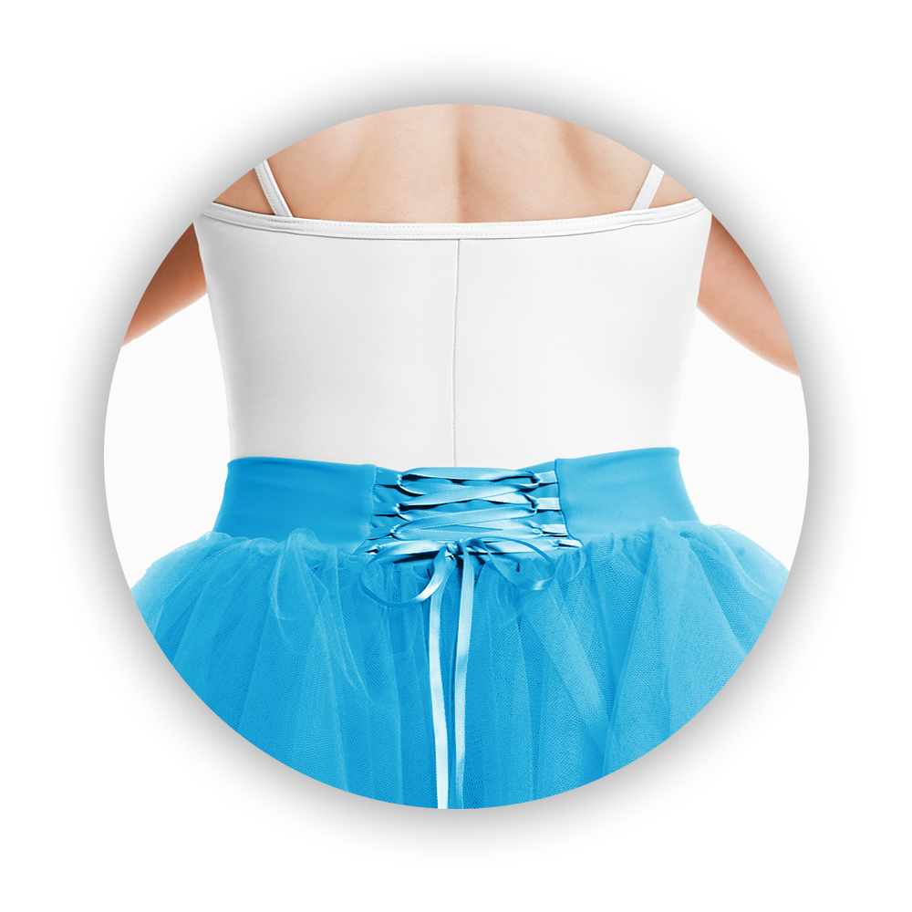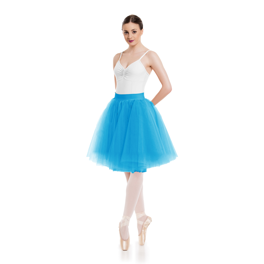 Μεσαίου μήκους φούστα tutu που δίνει αμέσως μια εκλεπτυσμένη εμφάνιση στη χορεύτρια, κατασκευασμένη από κομψό αλλά ανθεκτικό τούλι, με σταυρωτό κορδόνι σφίξης στην πίσω πλευρά για μέγιστη σταθερότητα κατά τη διάρκεια της κίνησης.