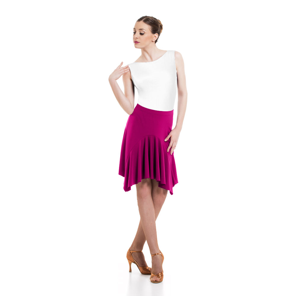 Λάτιν φούστα από την καλύτερη ποιότητα Super Jersey ή Meryl. Νιώστε τη μουσική, ζήστε την κίνηση και χορέψτε με πάθος με αυτή την εφαρμοστή και ελαστική φούστα που αγκαλιάζει το σώμα σας, χωρίς να εμποδίζει τις κινήσεις σας. Στο εμπρός και πίσω μέρος υπάρχει βολάν, ενώ διαθέτει απαλές ραφές για τέλεια αποτελέσματα. Φορέστε το μαζί με ένα όμορφο κορμάκι και καλσόν χορού για την ολοκληρωση του look.