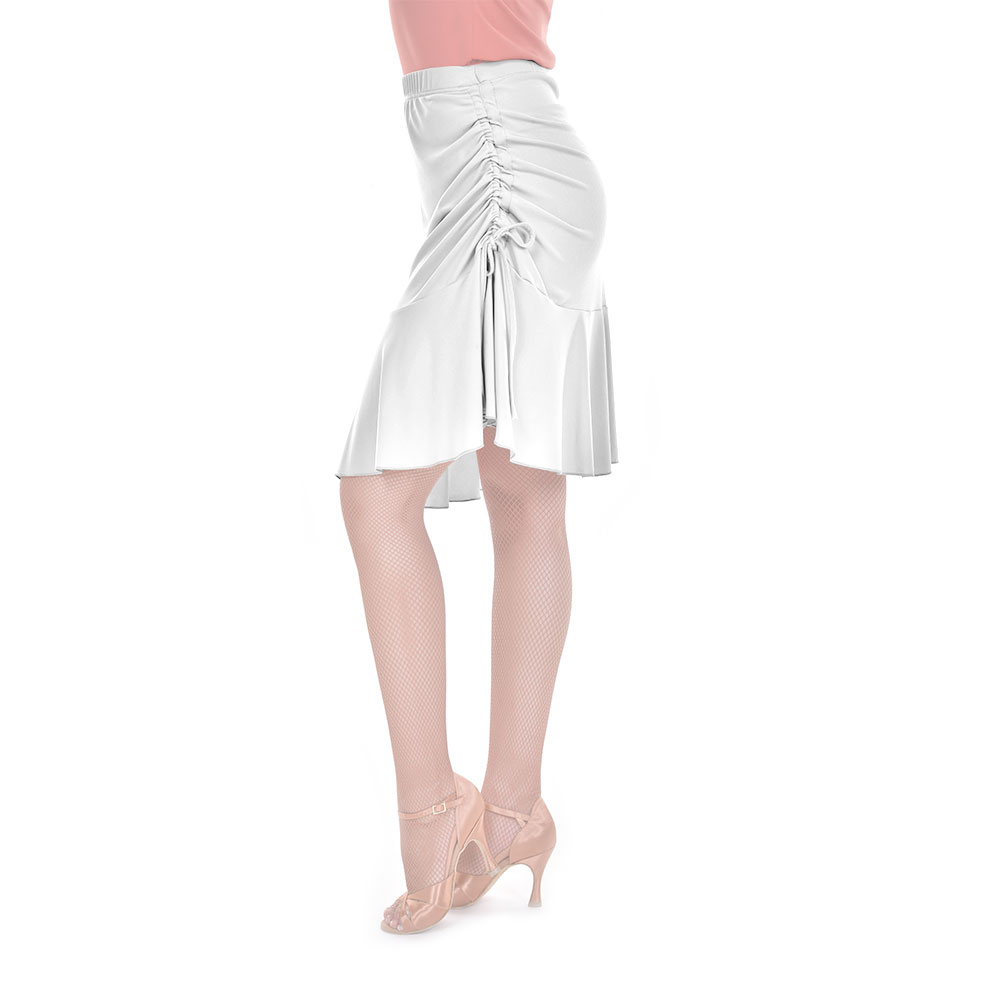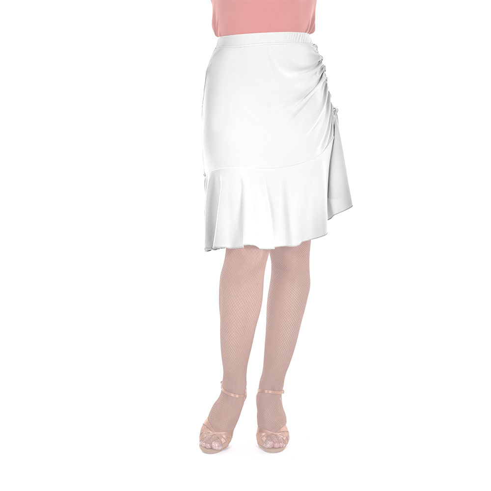 Φούστα latin και ballroom, κατασκευασμένη από ύφασμα Super Jersey της καλύτερης ποιότητας, ειδικά σχεδιασμένη για να αναδυκνεύει τη σιλουέτα του σώματος και να βοηθά την κίνηση με τις ελαστικές ιδιότητες της. Διαθέτει ρυθμιζόμενο κορδόνι σφιξης στο πλάι και ελαστική μέση. Μπορεί να φορεθεί σε κάθε περίσταση, ενώ συνδυάζεται με ένα όμορφο κορμάκι και καλσόν.