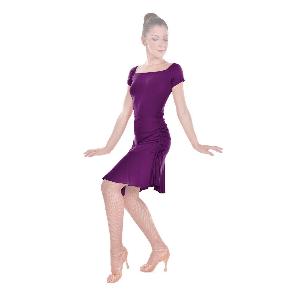 Φούστα latin και ballroom, κατασκευασμένη από ύφασμα Super Jersey της καλύτερης ποιότητας, ειδικά σχεδιασμένη για να αναδυκνεύει τη σιλουέτα του σώματος και να βοηθά την κίνηση με τις ελαστικές ιδιότητες της. Διαθέτει ρυθμιζόμενο κορδόνι σφιξης στο πλάι και ελαστική μέση. Μπορεί να φορεθεί σε κάθε περίσταση, ενώ συνδυάζεται με ένα όμορφο κορμάκι και καλσόν.