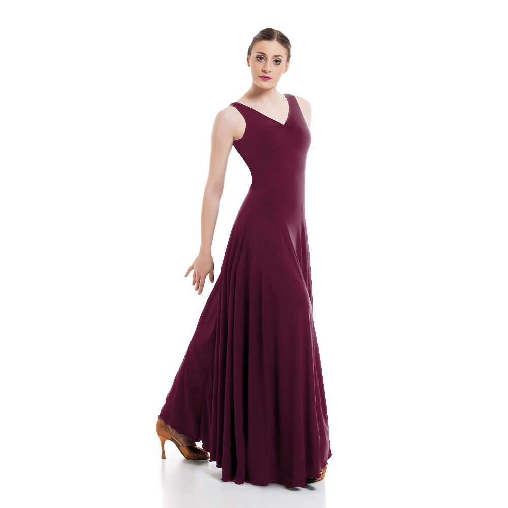 Γυναικείο Μακρύ Φόρεμα με Λαιμόκοψη σε σχήμα V & Βαθειά Πλάτη, Super Jersey Burgundy
