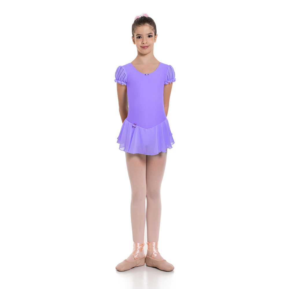 Παιδικό Κορμάκι Με Φουσκωτά Μανίκια και Ενσωματωμένο Φουστάκι, Βαμβάκι - Ελαστάν Λιλά