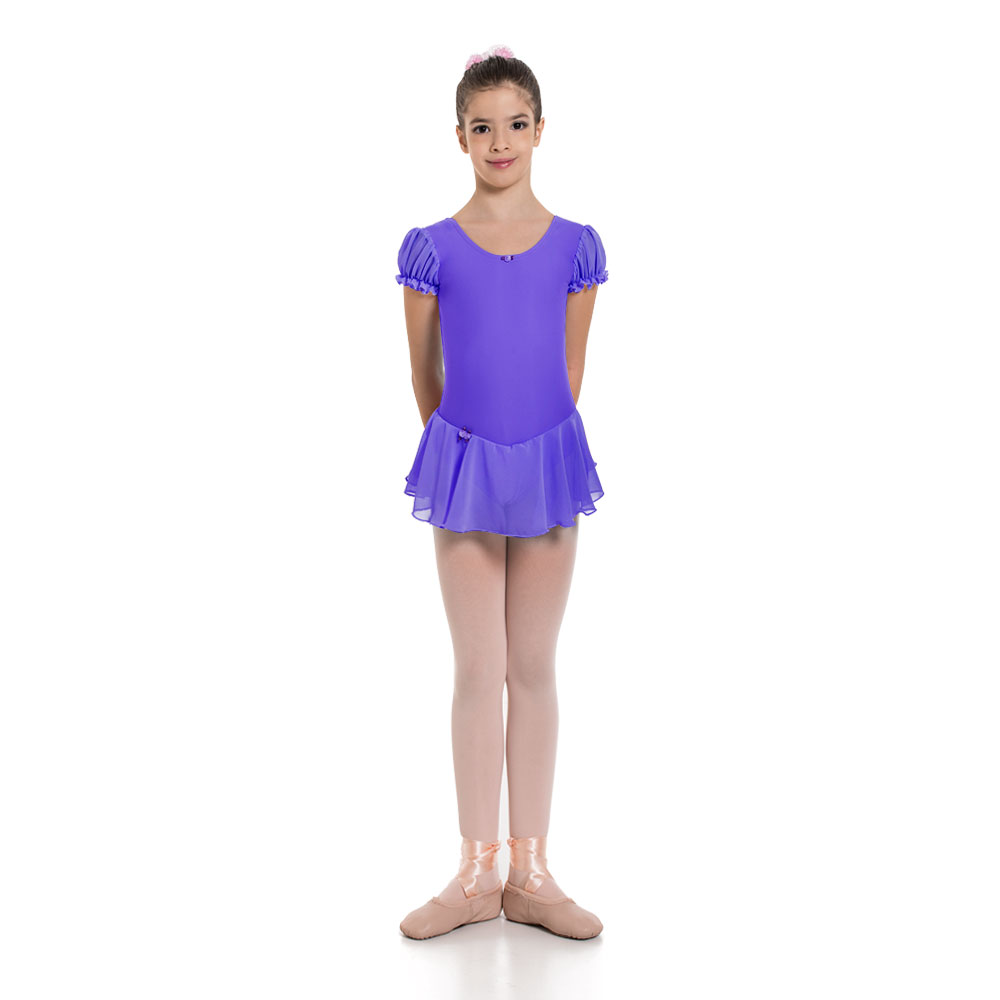 Παιδικό Κορμάκι Με Φουσκωτά Μανίκια και Ενσωματωμένο Φουστάκι, Βαμβάκι - Ελαστάν Μωβ