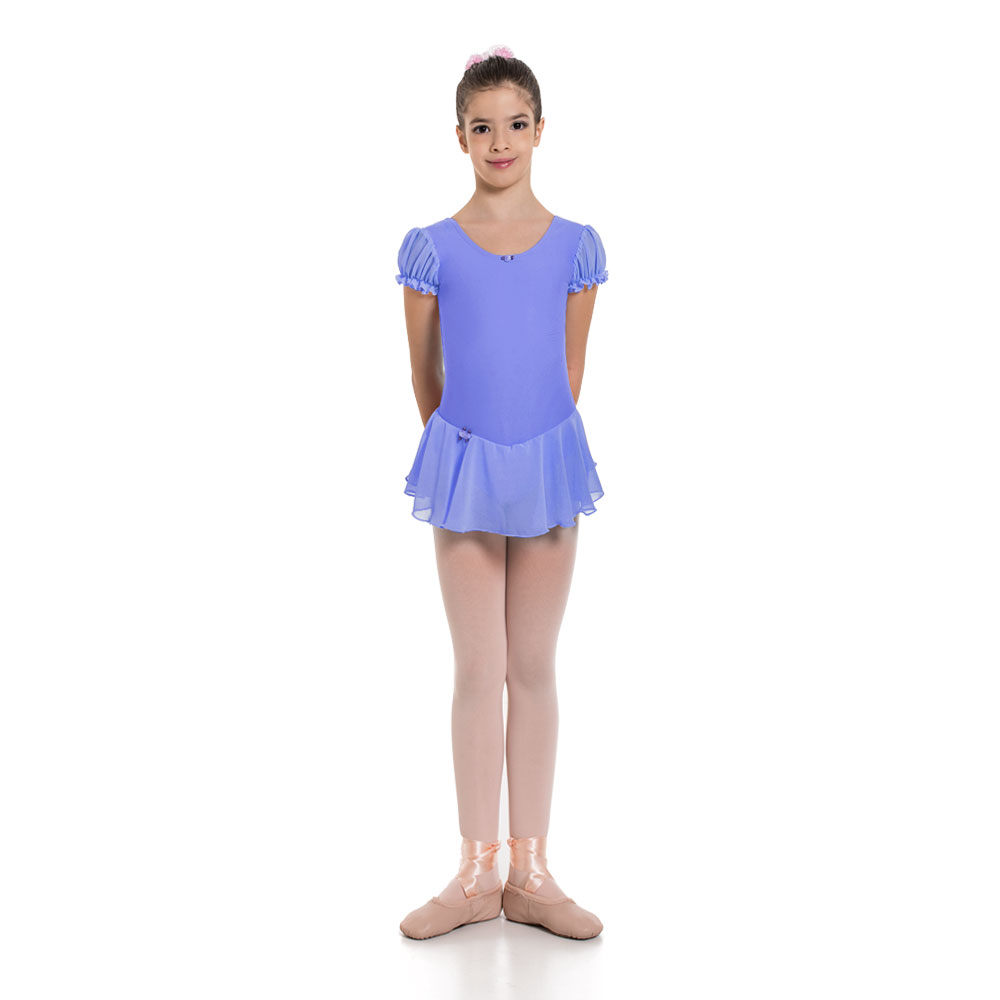 Παιδικό κορμάκι με φουσκωτά μανίκια και ενσωματωμένο φουστάκι από λύκρα ματ υψηλής ποιότητας.