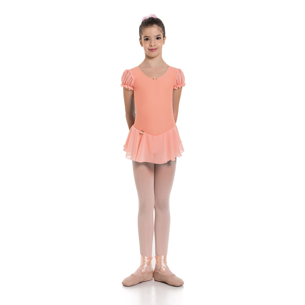 Παιδικό κορμάκι με φουσκωτά μανίκια και ενσωματωμένο φουστάκι από λύκρα ματ υψηλής ποιότητας.