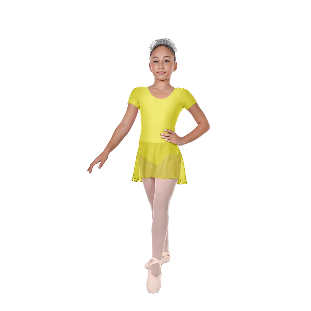Παιδικό Κορμάκι με Ενσωματωμένη Φούστα από Μουσελίνα, με Κοντό Μανίκι, Βαμβάκι - Ελαστάν Κίτρινο