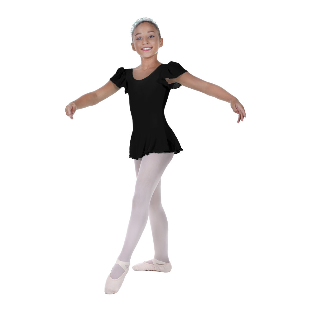 Girls Flutter Sleeved Leotard With Skirt, Cotton, Elastane Black