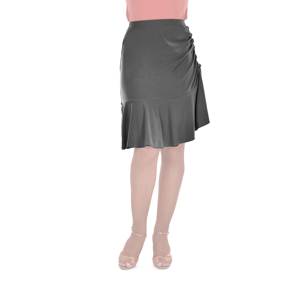 Φούστα latin και ballroom, κατασκευασμένη από ύφασμα Super Jersey της καλύτερης ποιότητας, ειδικά σχεδιασμένη για να αναδυκνεύει τη σιλουέτα του σώματος και να βοηθά την κίνηση με τις ελαστικές ιδιότητες της. Διαθέτει ρυθμιζόμενο κορδόνι σφιξης στο πλάι και ελαστική μέση. Μπορεί να φορεθεί σε κάθε περίσταση, ενώ συνδυάζεται με ένα όμορφο κορμάκι και καλσόν.