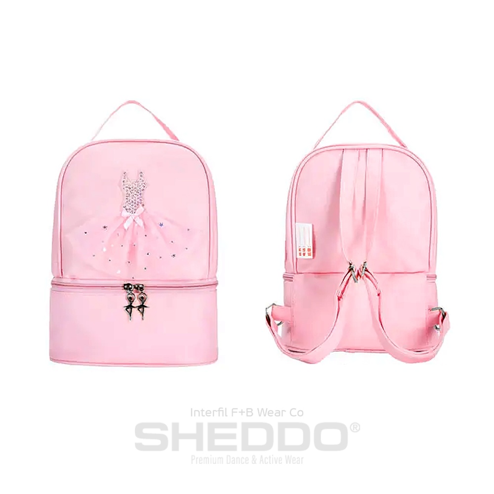 Tutu strass backpack for kids, with a different compartment for shoe-pointe storage.