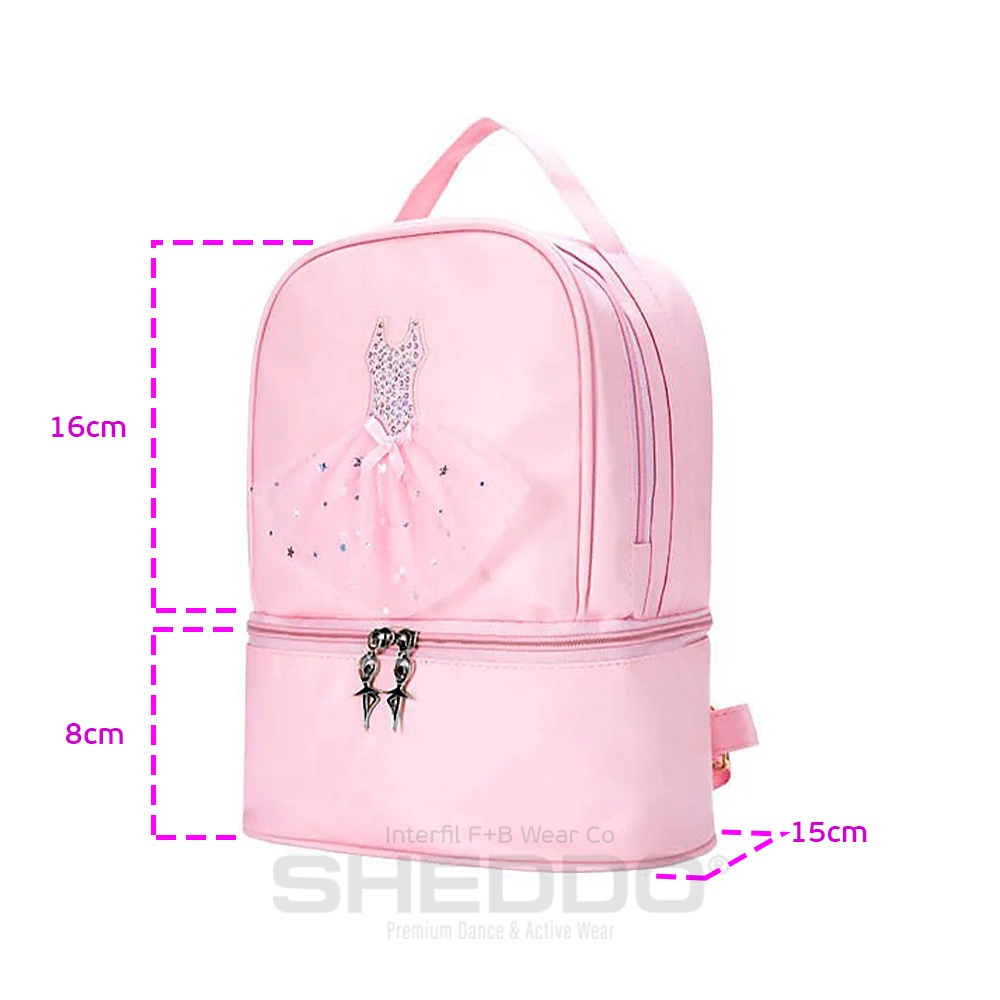 Children's Tutu Strass Backpack with Secondary Compartment for Shoes