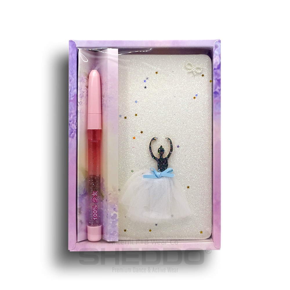 Sheddo® presents a cute Note and Diary set for all circumstances for our little friends. Blank (without rows) Note book with a Tutu Dancer embedded on the cover, and a big Glitter Pen that writes 0.5mm of black colour.