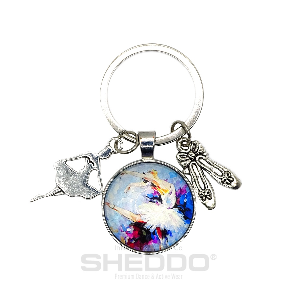 Alloy Κey ring 25mm in silver colour, featuring a Ballerina, Pointes and Tutus. A cute, simple, yet unique look key ring that's perfect for everyday wear for all the Ballet Lovers.