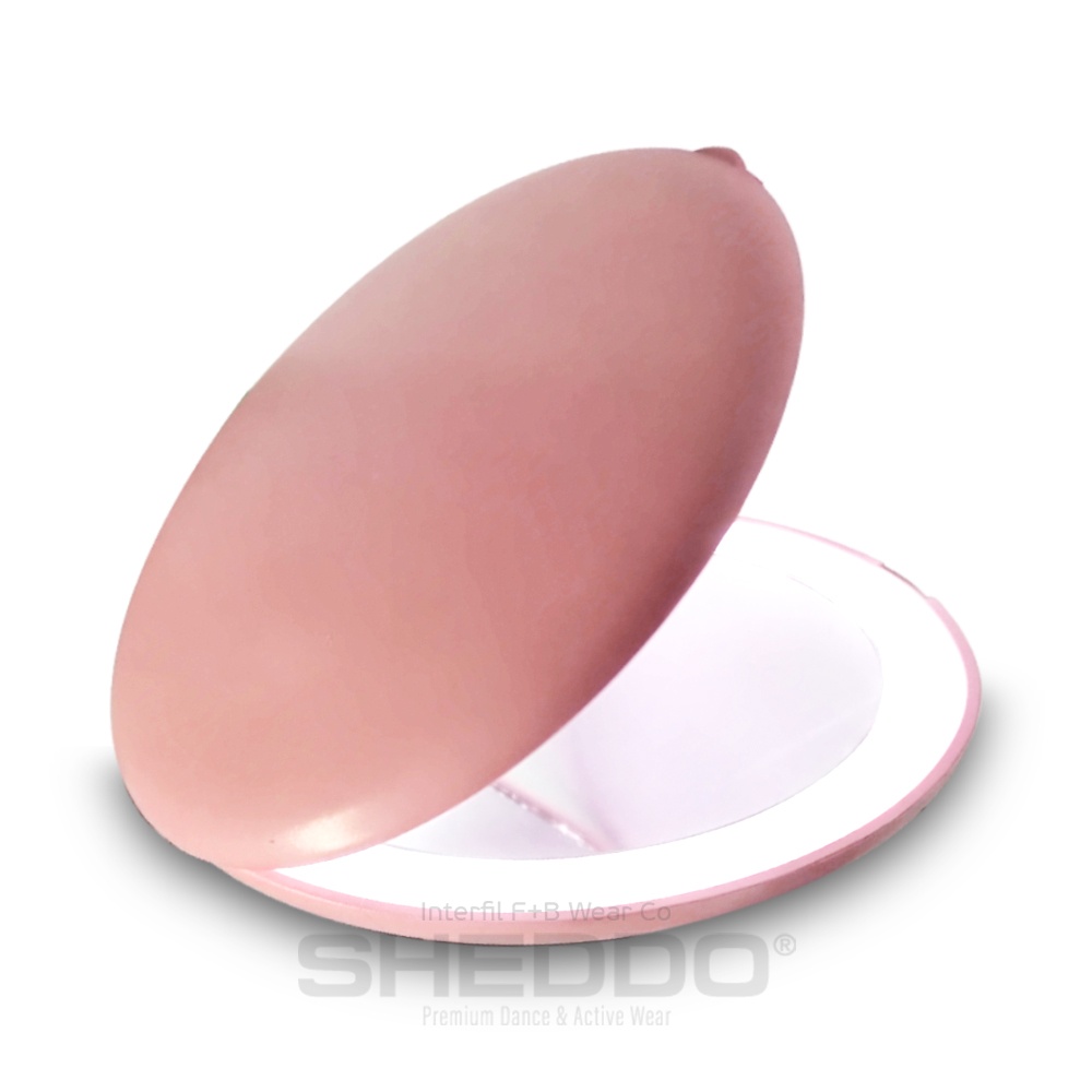 Mini portable mirror that folds with Led ring on the lower half and double magnification.