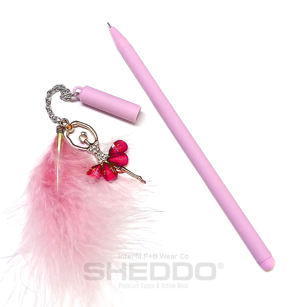 Ball pen, customised to look beautiful with a peacock feather and a sweet metallic Tutu wearing ballerina that can easily be removed off the cap and placed wherever you want. It features a thin line tip of 0.5mm and black liquid ink.
