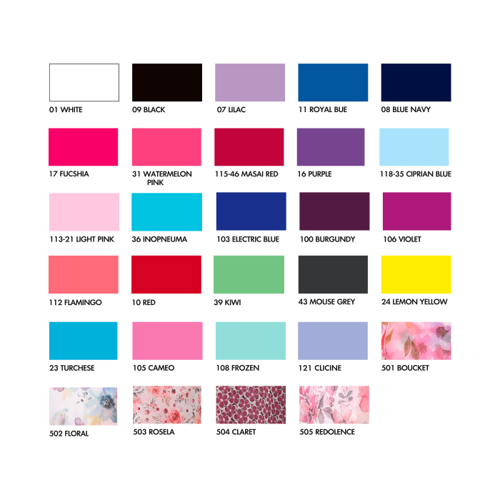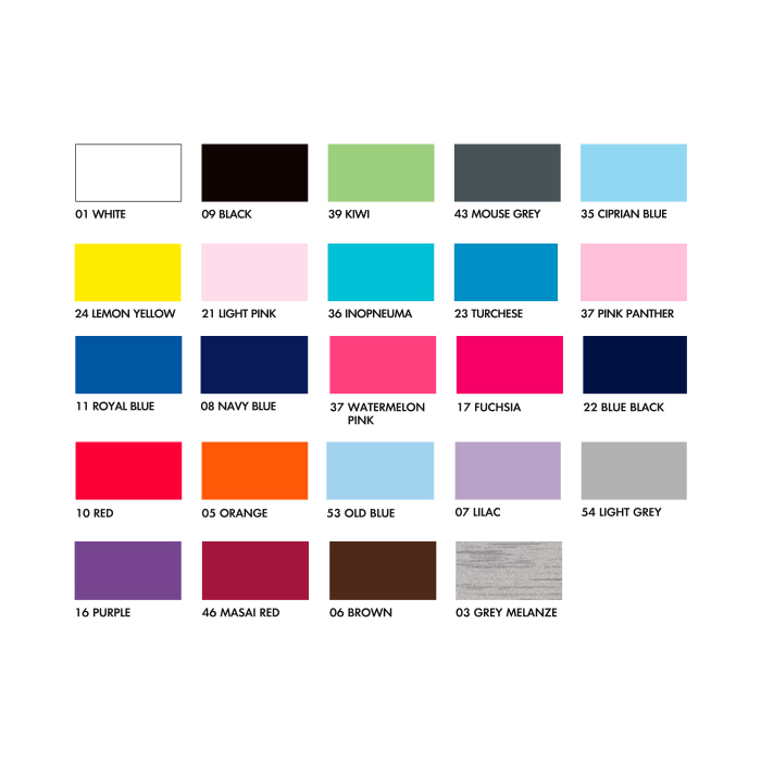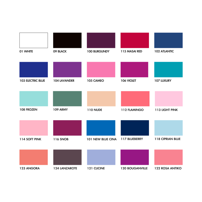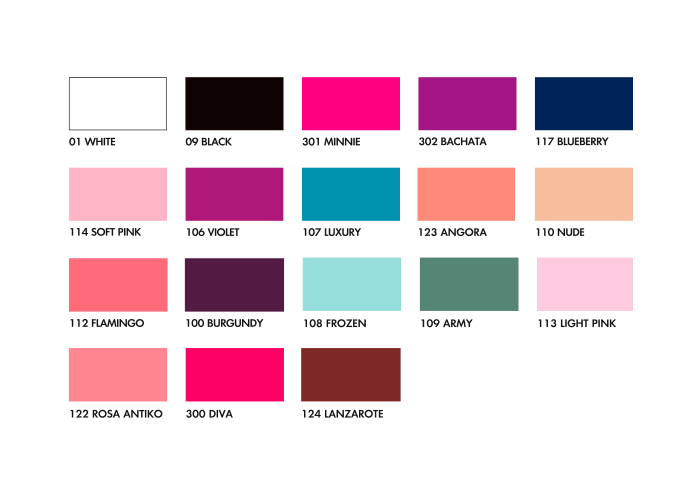 In the table below you can see all the available colours depending on the fabric of your choice. We have made every effort to make the colours on the screen as close to reality as possible. Unfortunately, due to the nature of the fabrics, we can not guarantee the accurate display of shades on your screen.