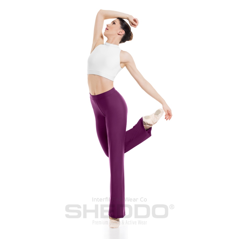 Female Straight Leg Pants with Elastic Waist Band, Lycra Matt Burgundy