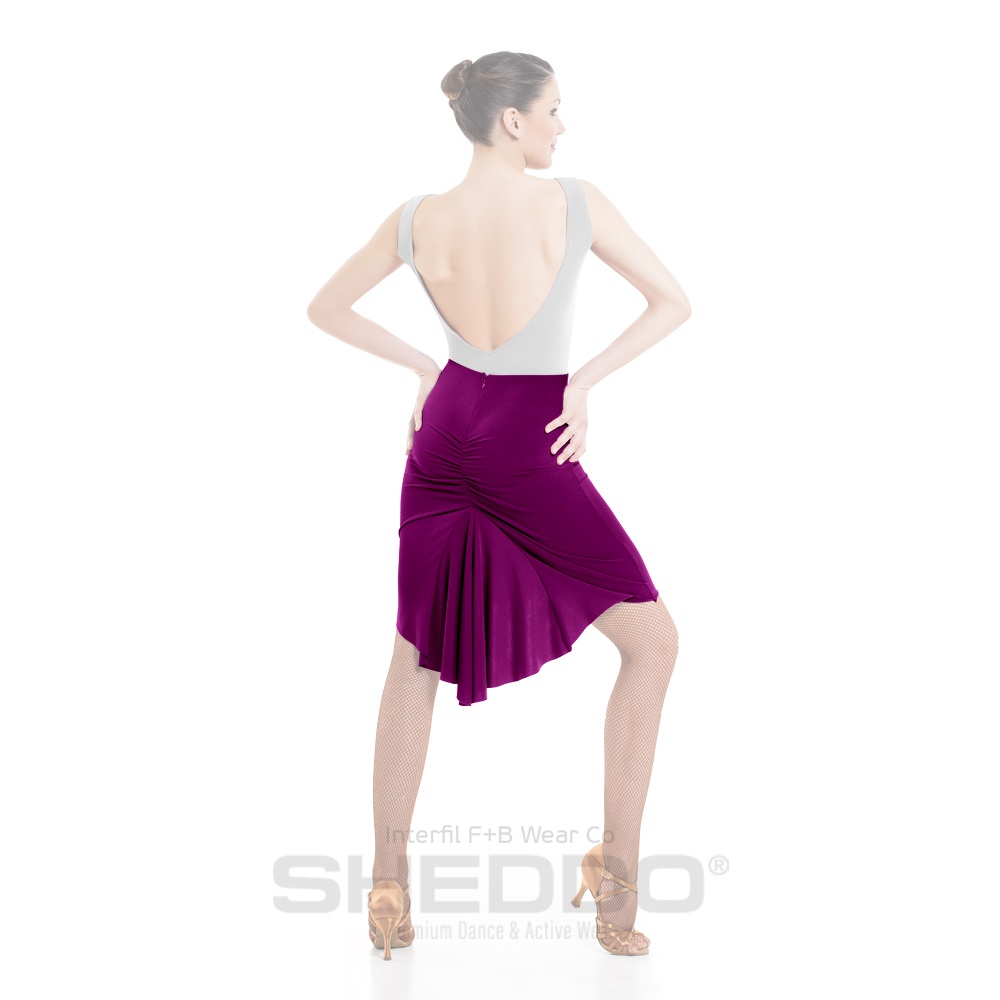 Latin skirt made by the finest quality Super Jersey or Meryl. Feel the music, experience the movement and dance with passion with that fitted and elastic skirt that hugs your body, without obstructing any of your movements. Featuring a gathered section on the back and train Godet seams for the perfect results. Wear it alongside a beautiful leotard and sexy fishnet tights.