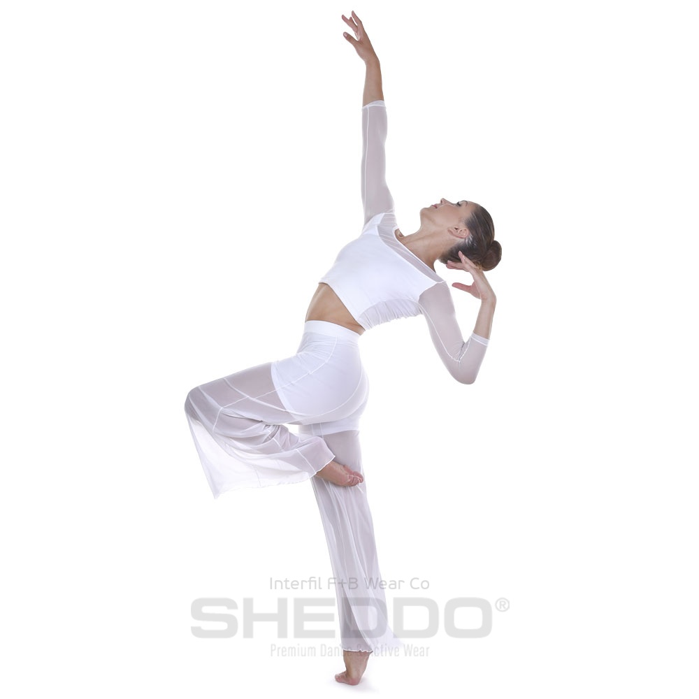 Female 3/4 Sleeved Scoop Neck Low Back Mesh Top, White