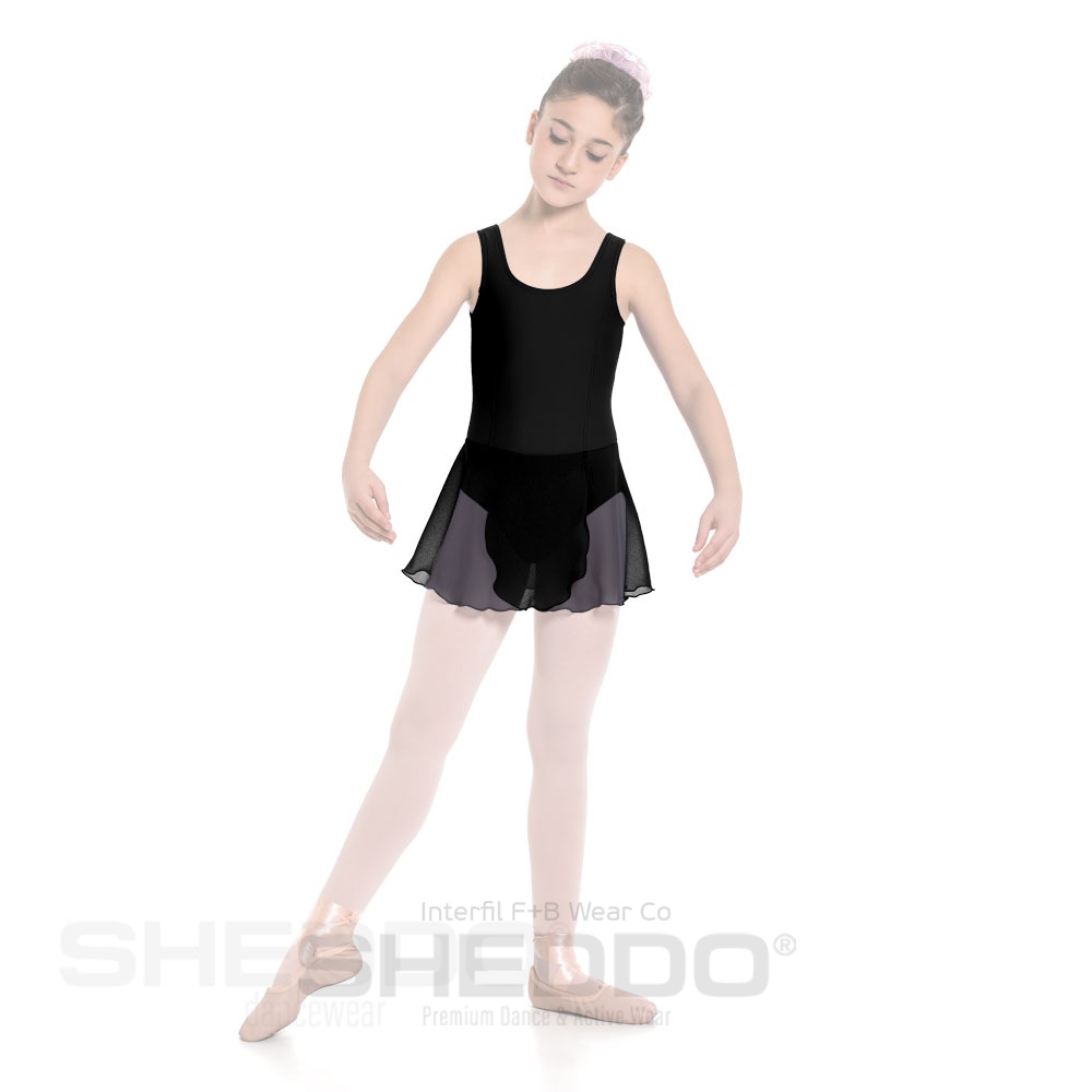 Girls Tank Leotard With Princess Seams & Crossover Skirt, Lycra Matt Black
