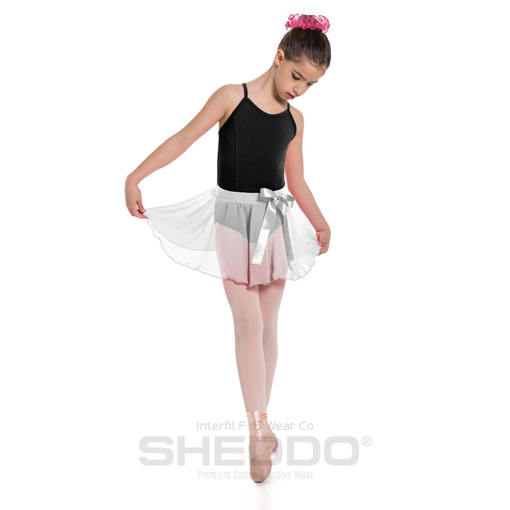 Equipped with an elasticated waist band and also a cute bow for perfect stability during intense movement. This skirt will make her look like a daydream. If you are searching for a practice skirt for a dance class or for a classical ballet skirt, this wrap-over skirt made from mousseline of the finest quality, will fulfil your requirements. Pair it with leotards or tops, and even t-shirts for casual classes.
