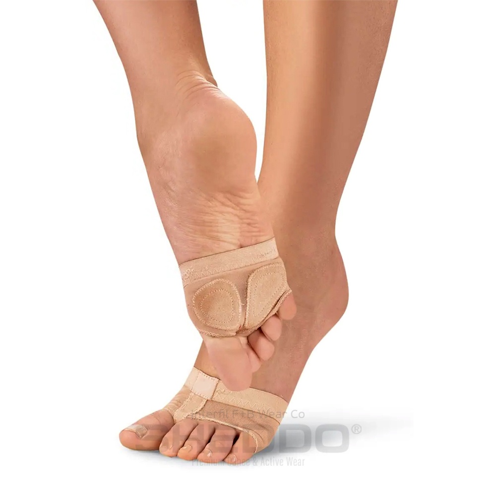 The Protective foot Undeez allow you to protect the balls of your feet against cuts and scrapes while creating the illusion of dancing barefoot. The unparalleled floor feel, foot articulation, and traction comes from two separate suede sole patches which form to the individual pads of your foot. Double stitching secures the pads while plush elastic moves with the foot and keeps the shoe in place. Recommended for lyrical and modern classes.