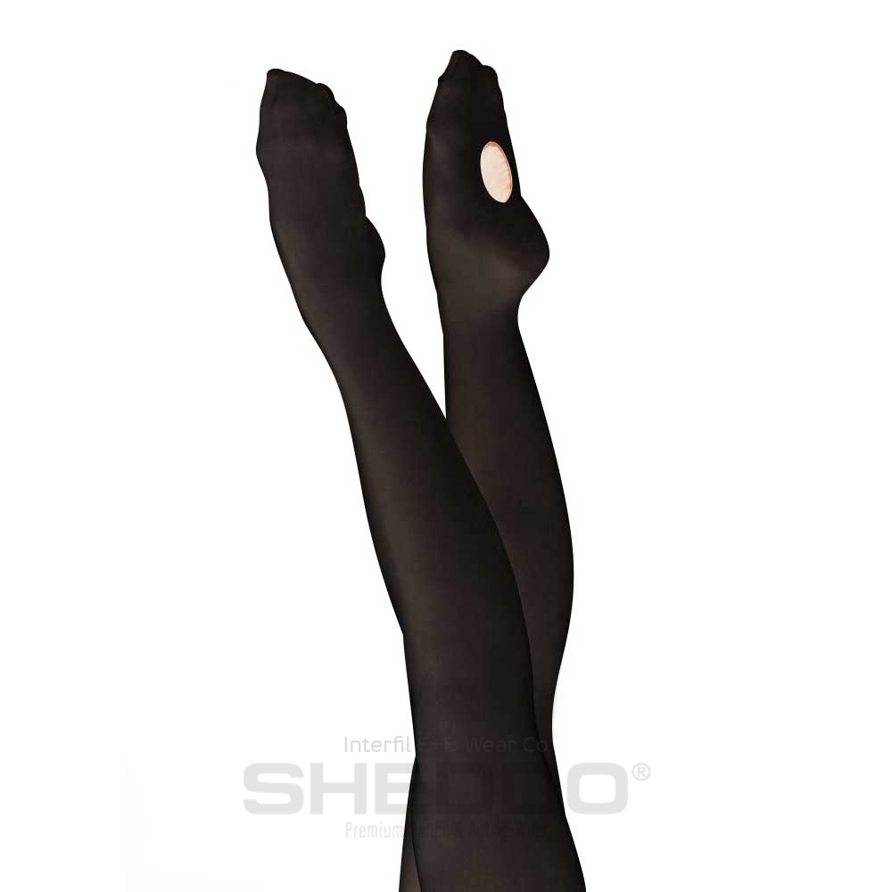 This pair of easily convertible ballet tights, add both style and practicality. Made by excellent quality Microfibra (85% Polyamide & 15% Elastane), unlike the regular footed tights, the small hole at the bottom of the foot allows you to pull them up over the ankle, converting them to footless tights. It is stretchy and elastic, so you can open it wide enough to pull the foot through, but it stays tight and encloses the foot providing cover and flexibility.
