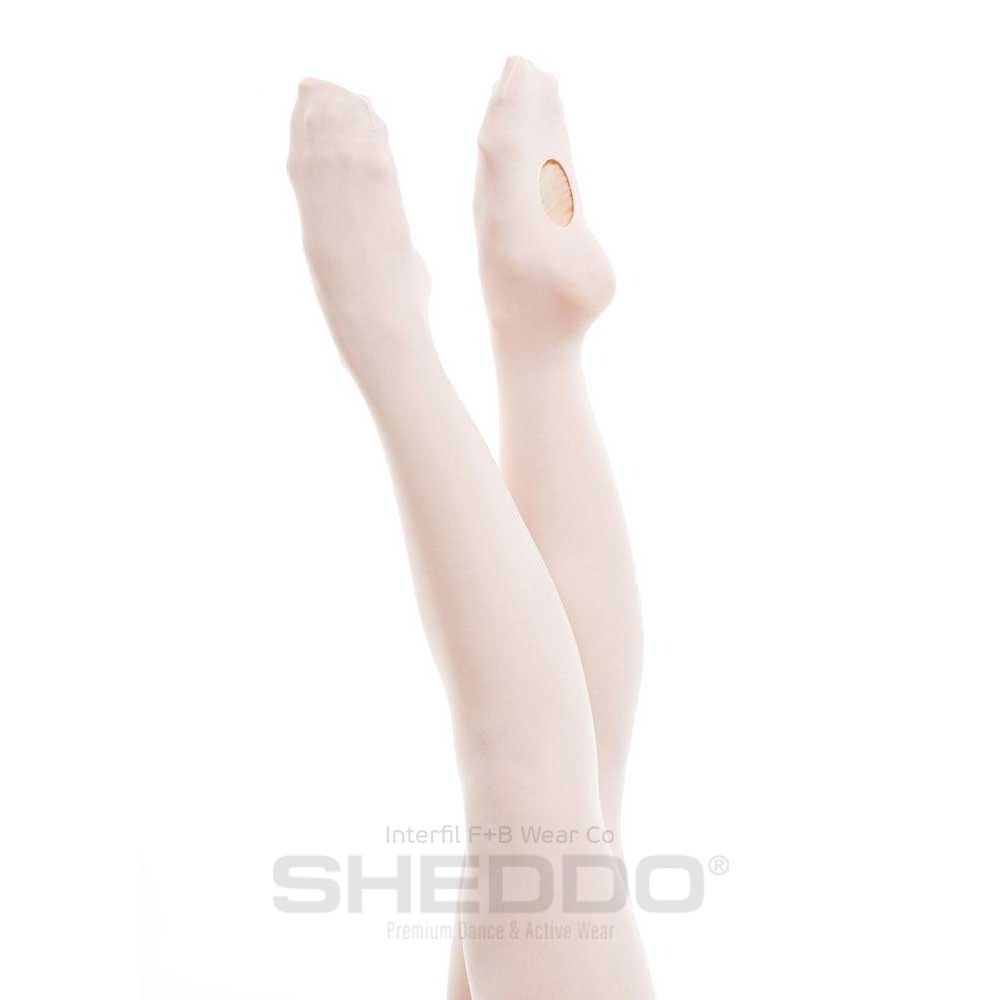 This pair of easily convertible ballet tights, add both style and practicality. Made by excellent quality Microfibra (85% Polyamide & 15% Elastane), unlike the regular footed tights, the small hole at the bottom of the foot allows you to pull them up over the ankle, converting them to footless tights. It is stretchy and elastic, so you can open it wide enough to pull the foot through, but it stays tight and encloses the foot providing cover and flexibility.