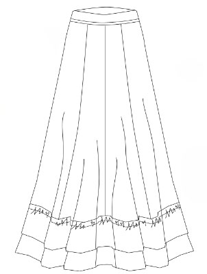 Female 8 Panels Spanish Skirt With 2 Tiered Ruffle at Hem, Marocain Black