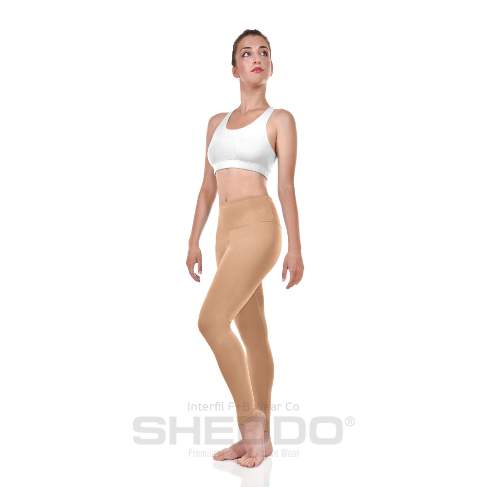 Female Active Fitted Ankle Leggings With Pocket In Waistband, Lycra Matt Nude
