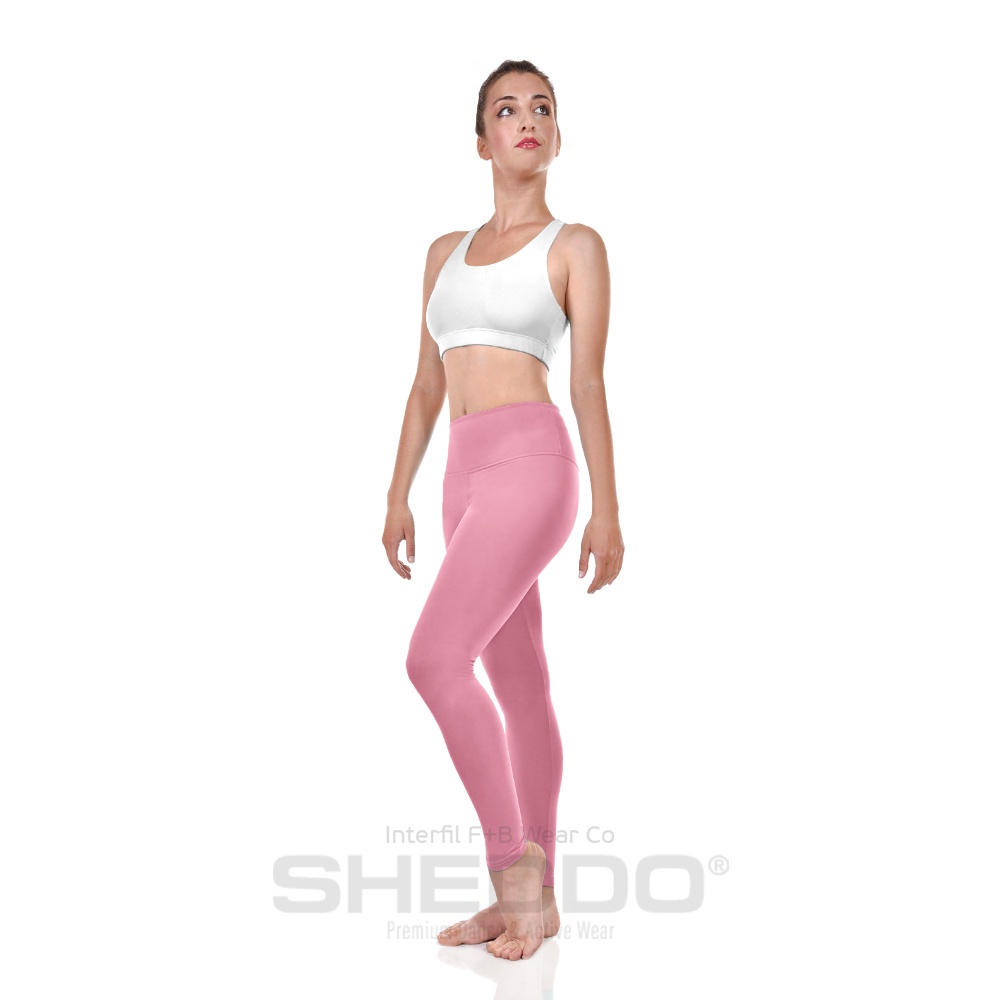 Female Active Fitted Ankle Leggings With Pocket In Waistband, Lycra Matt Soft Pink