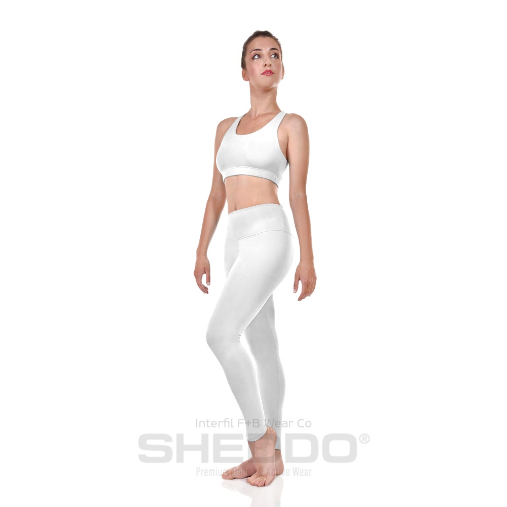 Female Active Fitted Ankle Leggings With Pocket In Waistband, Lycra Matt White