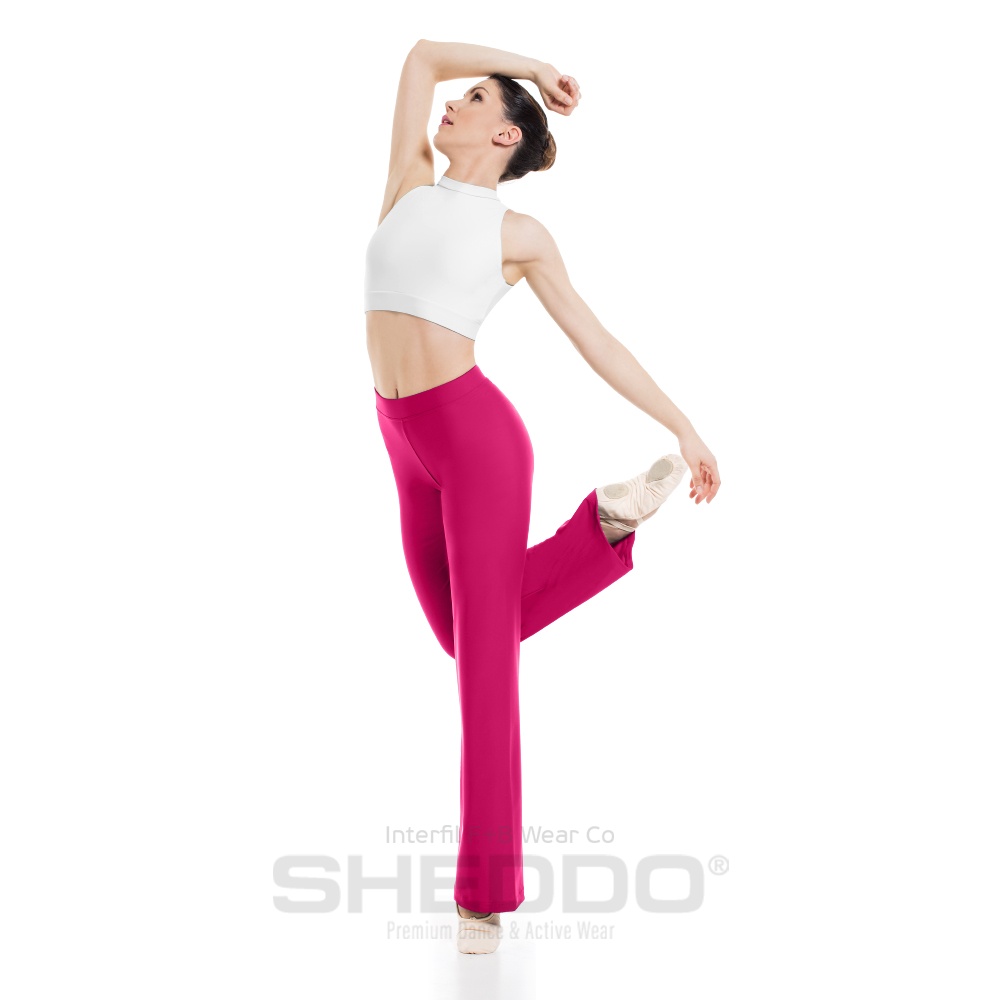 Female Straight Leg Pants with Elastic Waist Band, Cotton - Elastane Fuchsia