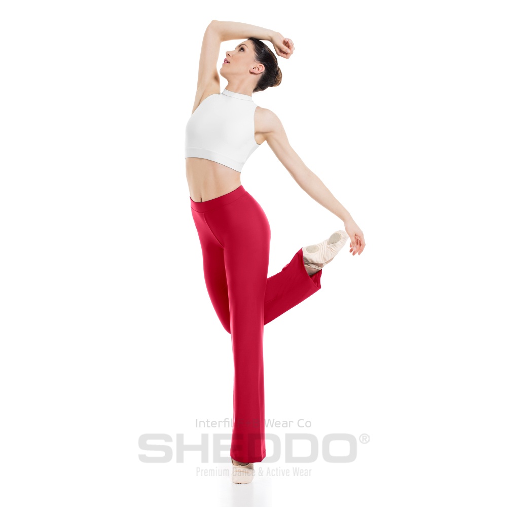 Female Straight Leg Pants with Elastic Waist Band, Cotton - Elastane Red
