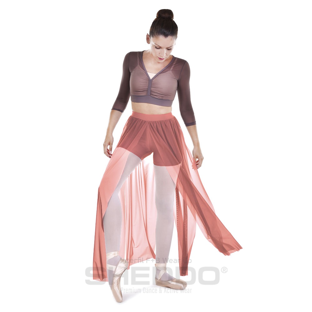 Delicate female shorts featuring chiffon spliced - rippled transparent stripes made of Tulle and Lycra Matt/Meryl.