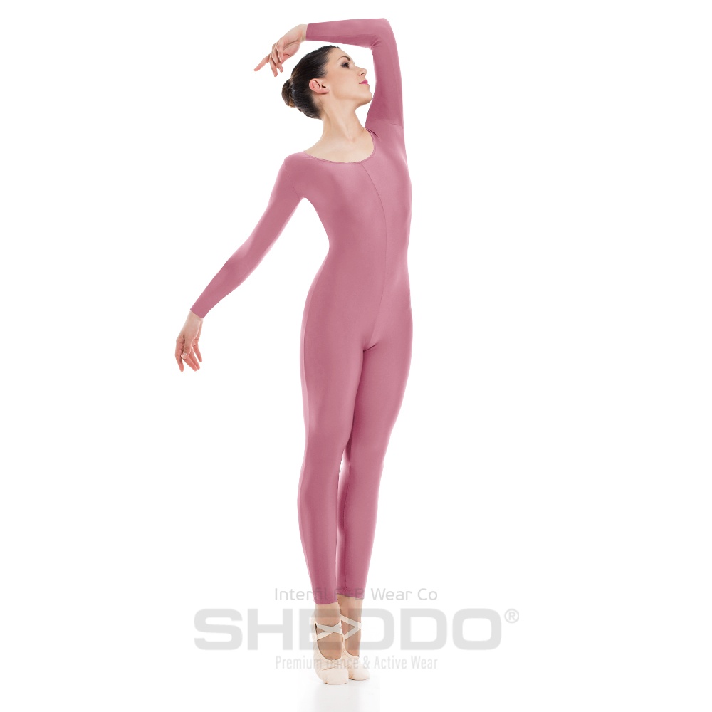 Female Long Sleeved Unitard, Lycra Matt Soft Pink