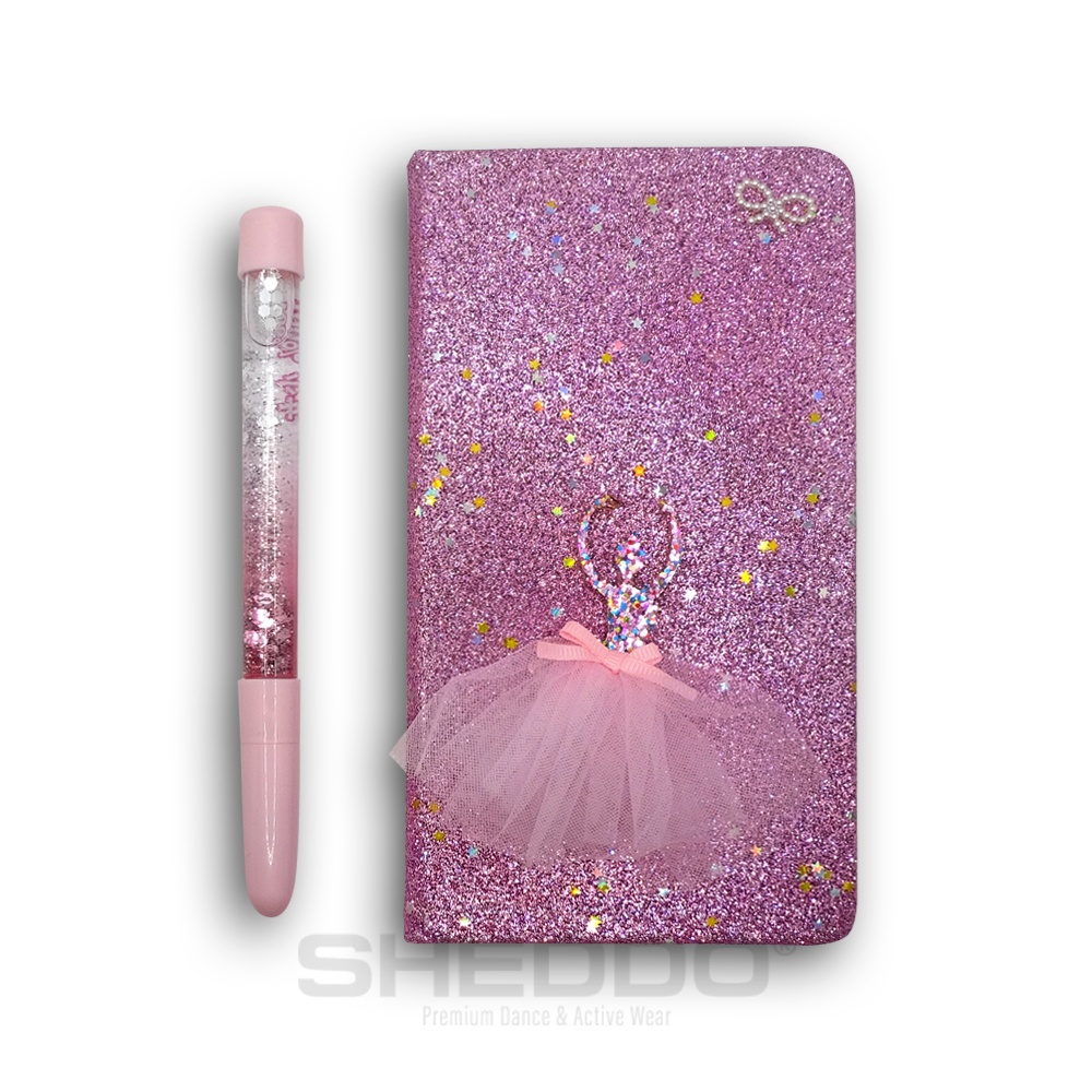 Sheddo® presents a cute Note and Diary set for all circumstances for our little friends. Blank (without rows) Note book with a Tutu Dancer embedded on the cover, and a big Glitter Pen that writes 0.5mm of black colour.